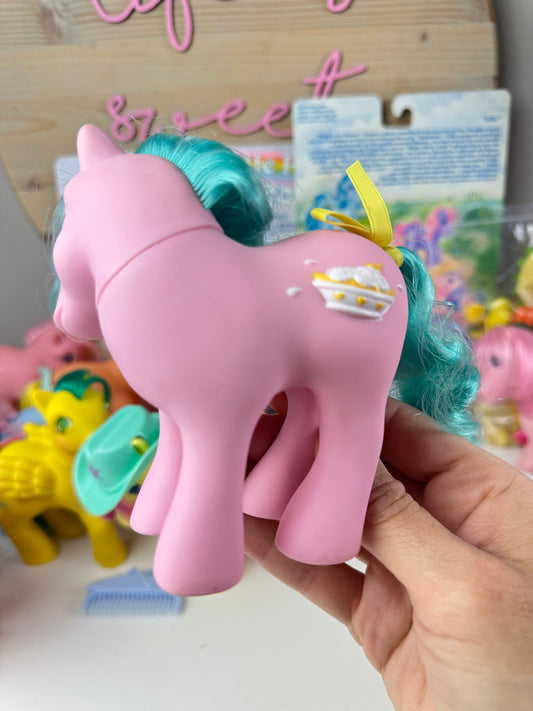 1980s Hasbro My Little Pony Sundae Best Banana Surprise with Ribbon + Clip
