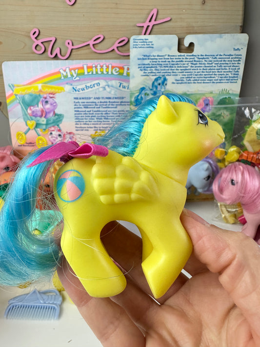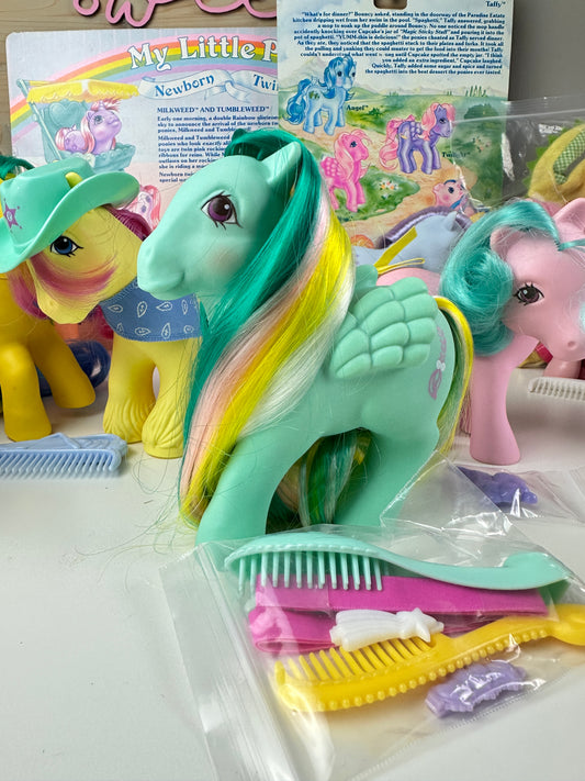 1980s Hasbro My Little Pony Milkweed & Tumbleweed Newborn Twins with Accessories