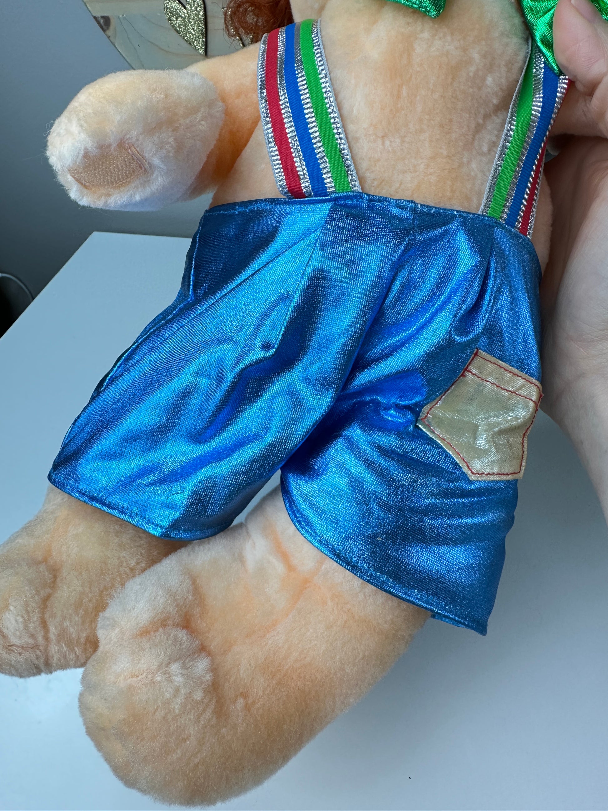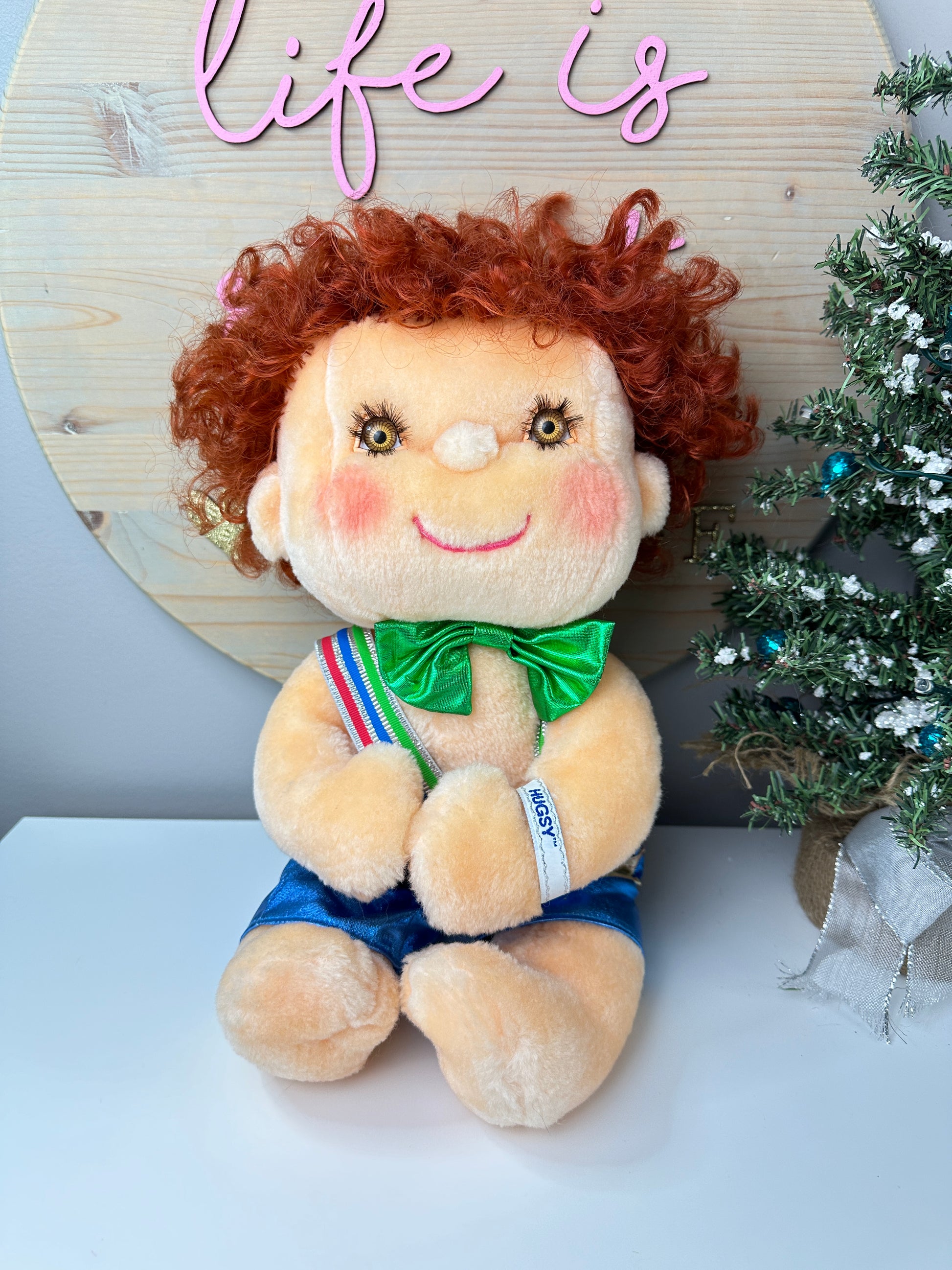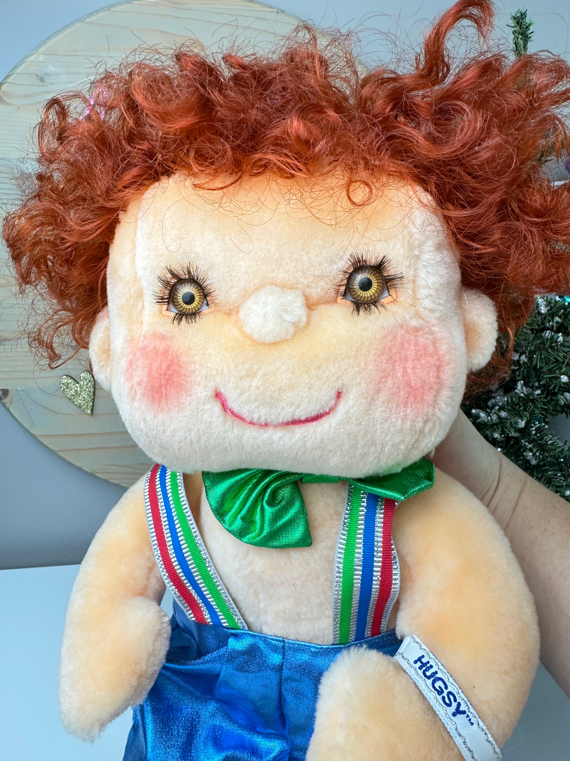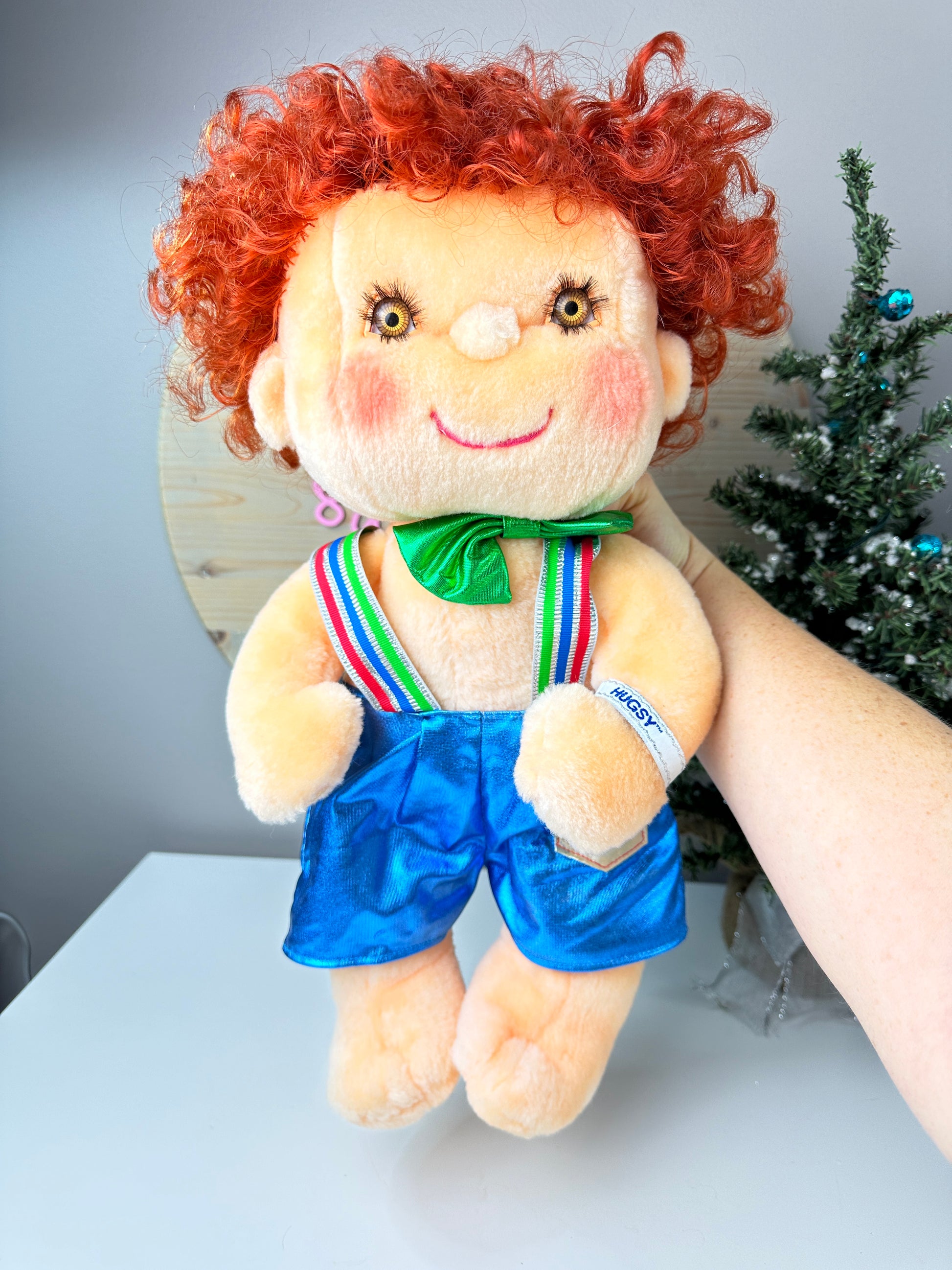 Hugsy is clean and in excellent condition. His outfit hardly shows any wear (the material is delicate). He doesn't come with his Huglet. I have not washed him - his hair could use some fixing.