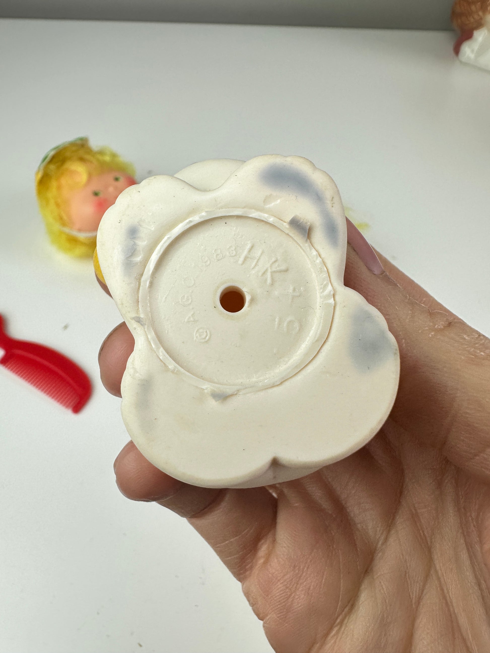 Lem and Ada look unplayed with good elastic! Lem has a spot on his chin that I've treated with RemoveZit. Sugarwoofer has some blue dye transfer on him so I treated him with RemoveZit as well. It will still be there when you receive him but hopefully lighter.
