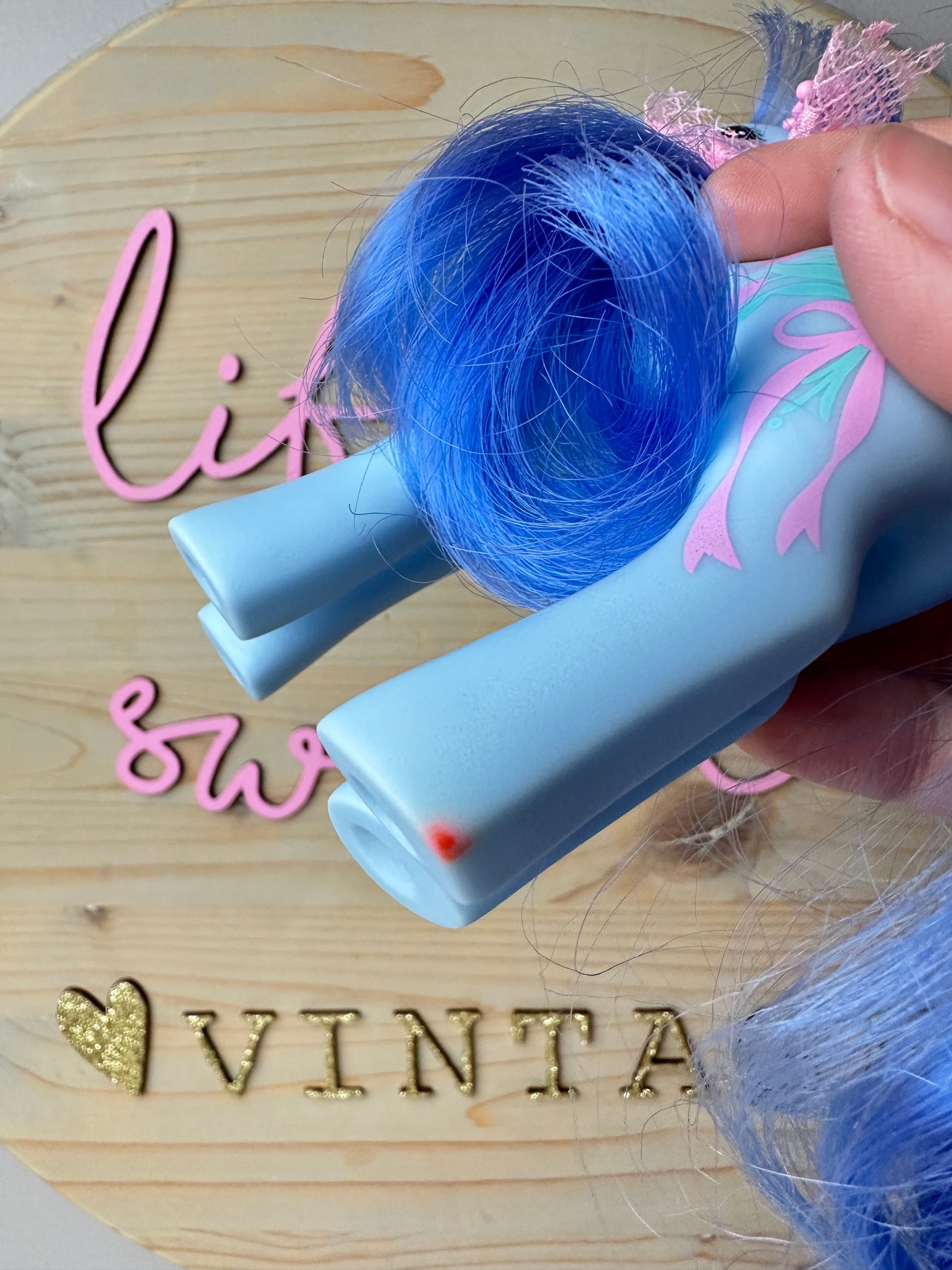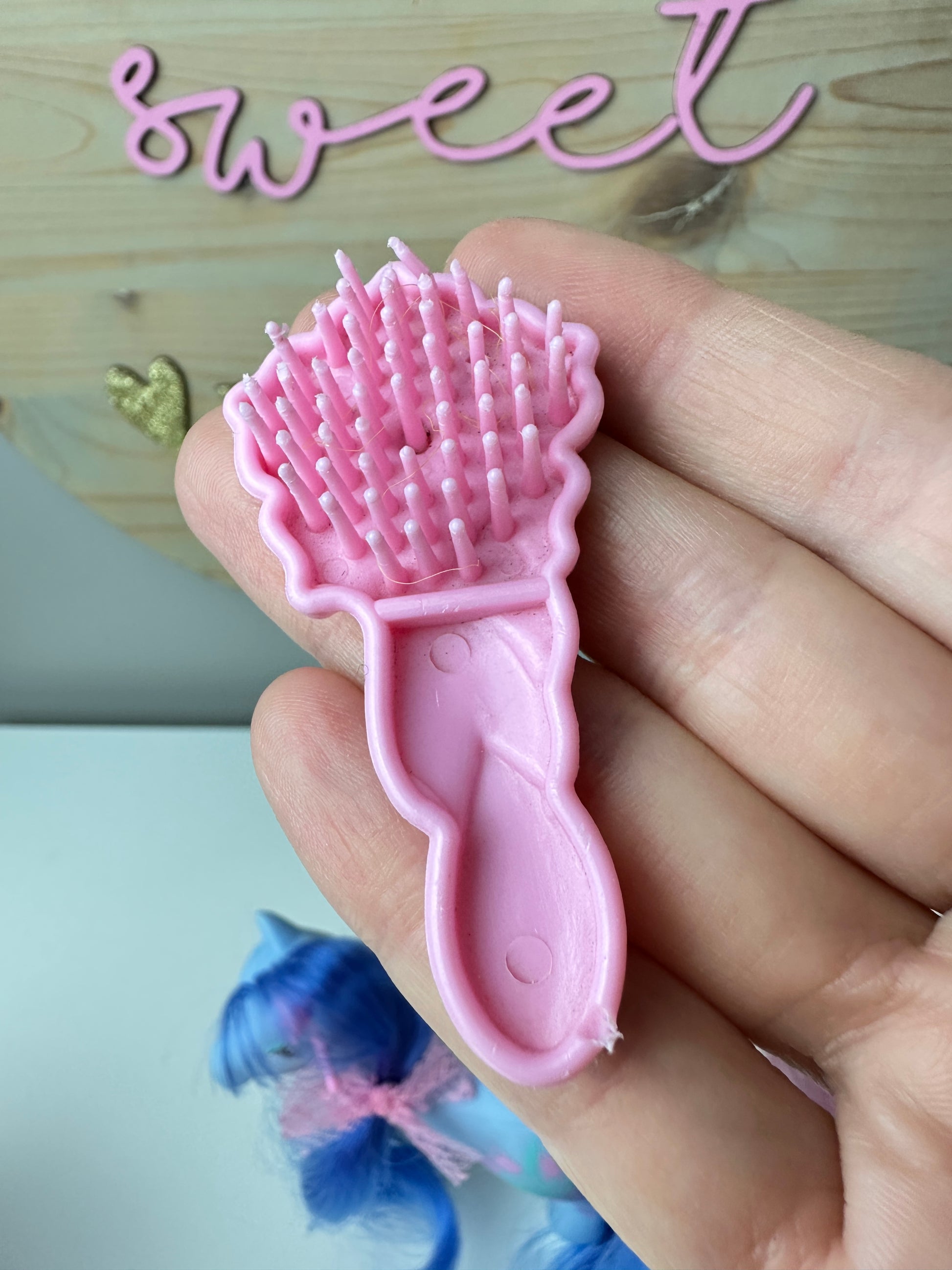 Flowerburst is from my personal collection and it took me several years to find one this nice! She's barely played with and has her earring, ribbon, and brush. She is minty but there's an orange mark on her foot. The brush has some bent bristles.