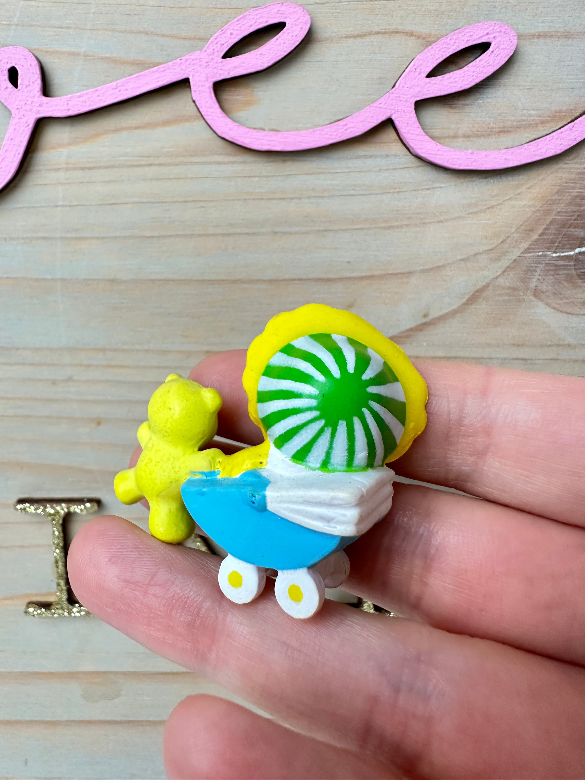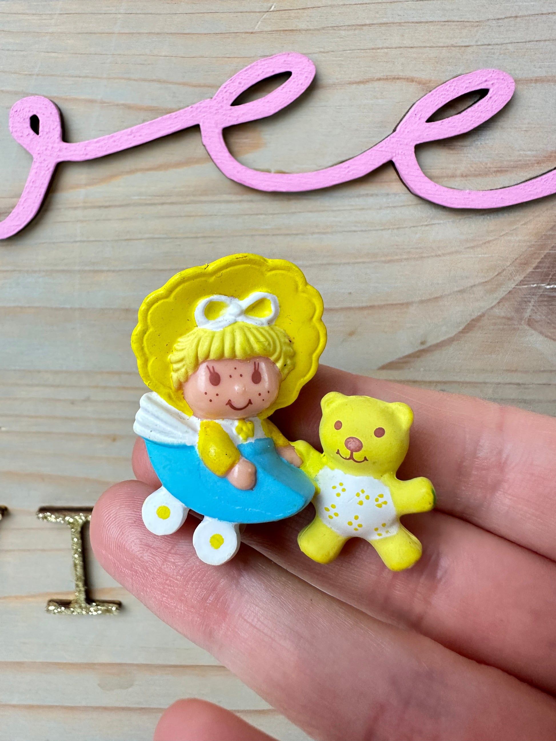 1980s Kenner Strawberryland Strawberry Shortcake Butter Cookie with Jelly Bear in a Buggy Miniature PVC Figure