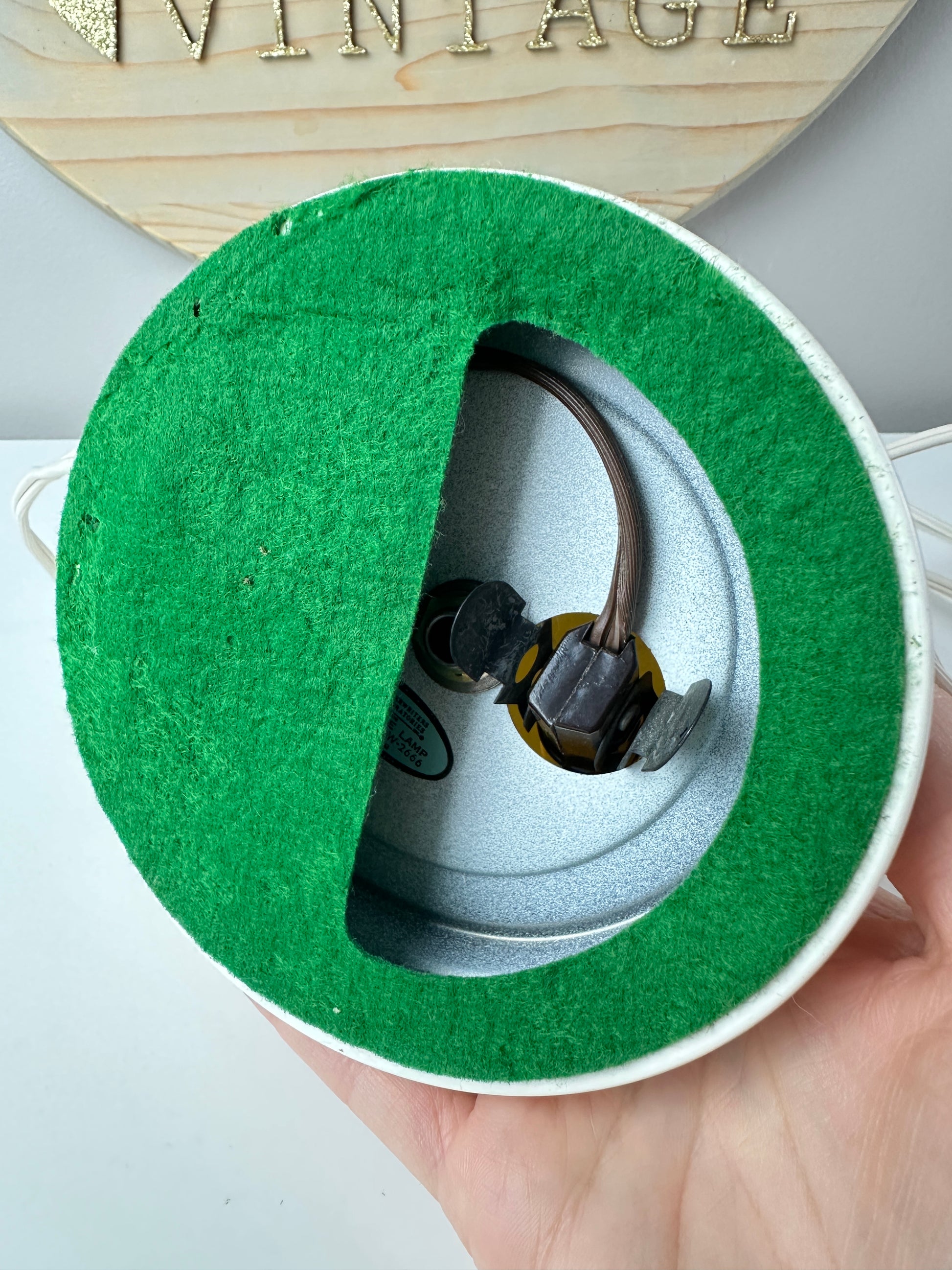 This is a very rare vintage SSC night light. It's in gorgeous condition with some yellowing to the "shade" part of it. It's the exact same color as the topper so it may have been a cream color originally - but there is definitely some yellowing going on. It works! The original wiring and light bulb works; if it ever stops working you can find LED replacements. I prefer those for my Christmas village. It hooks in the same way.