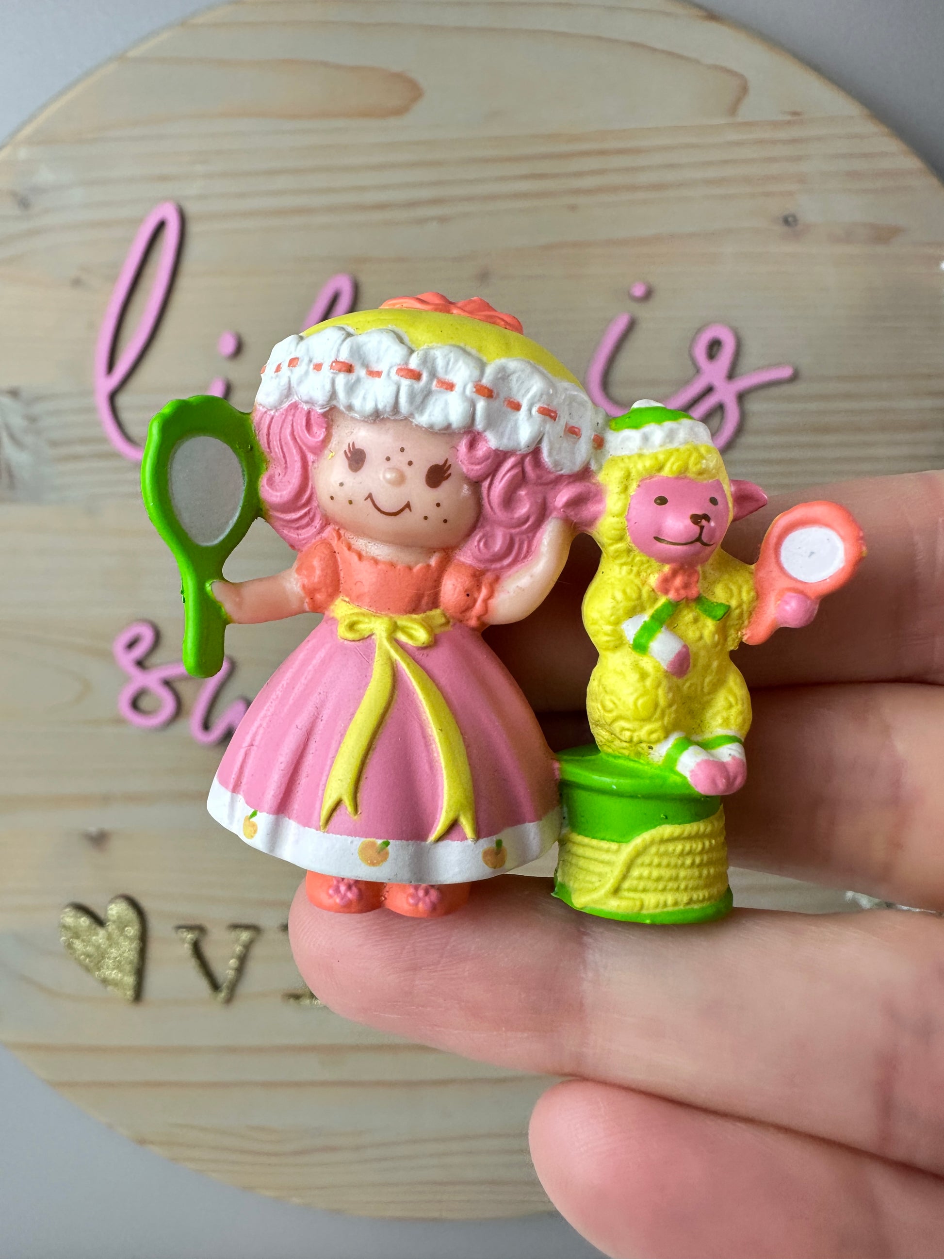 1984 Kenner Strawberry Shortcake Peach Blush with Melonie Belle Getting Ready for Bed Mini PVC Figure *Berry Vault*