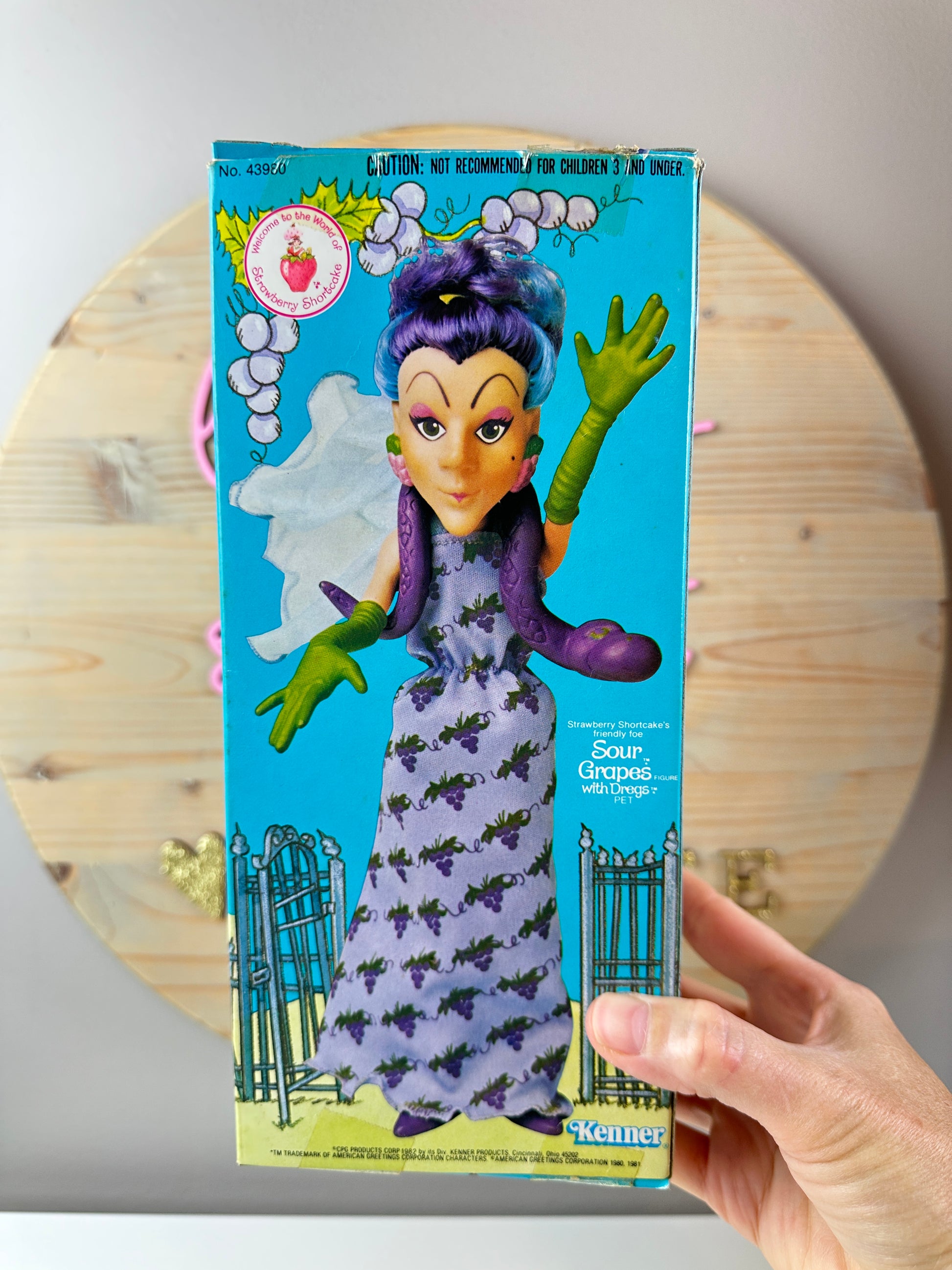 1982 Kenner Strawberry Shortcake Sour Grapes with Dregs Doll with Box